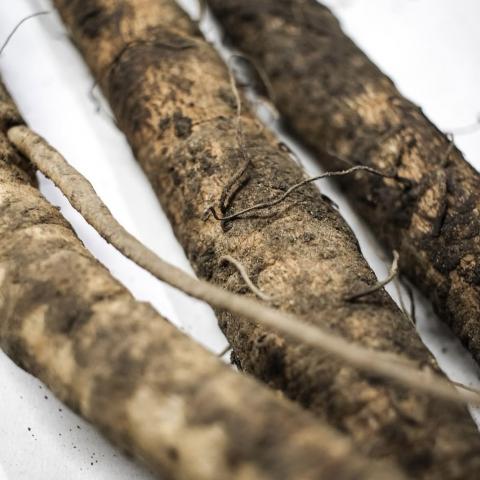 バルサミコでソテーしたごぼうをたっぷり練り込み、