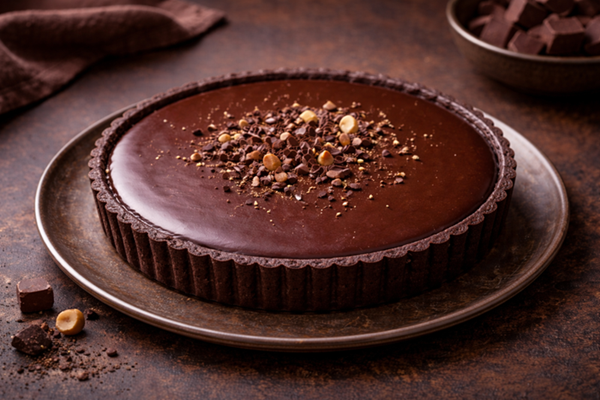フランスの伝統菓子「タルト・オ・ショコラ」。サクサクとしたタルト生地に、なめらかなチョコレートガナッシュを合わせ、シンプルながら完成度の高い一品に仕上げます。