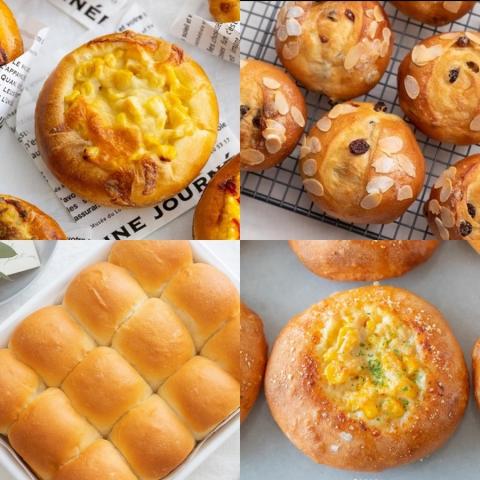 → 小麦・塩・砂糖・バター・水・イーストのシンプルな配合で手ごねを行い、基本のこね方や丸めを練習しながらちぎりパンに仕上げます。仕上げにバターとグラニュー糖をトッピングします。